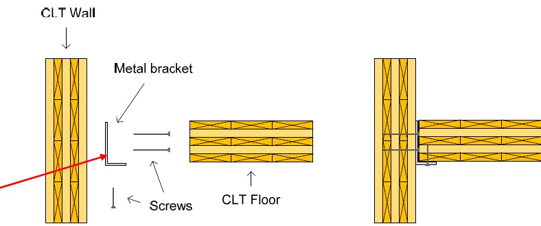 In balloon type of construction, traditional metal brackets and screws also can be used to connect the floor with the wall. The metal brackets are screwed to the wall first and then place the CLT floor on is and screw the metal bracket to the floor.